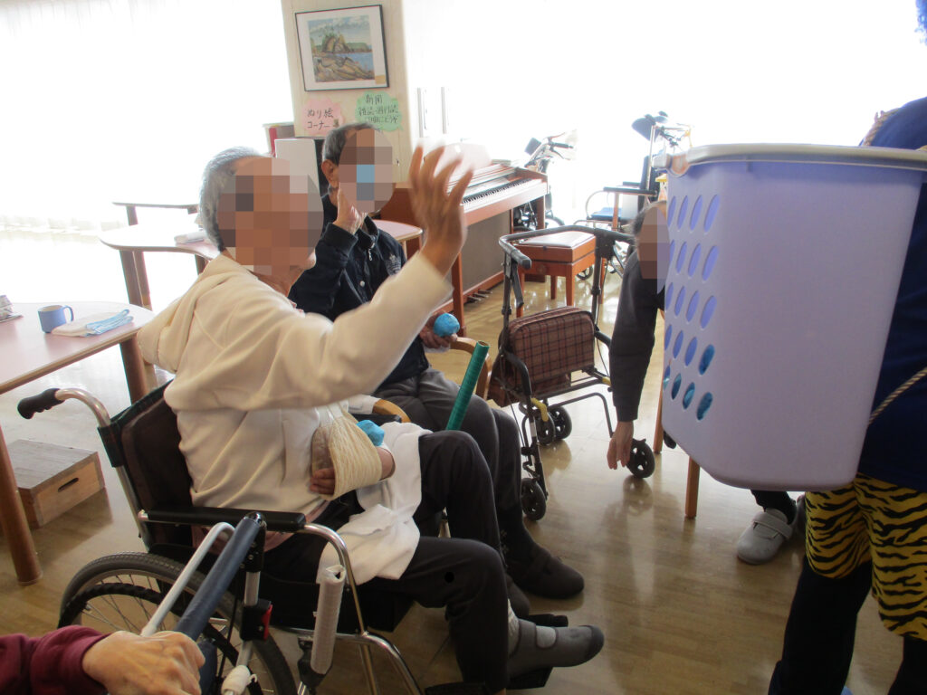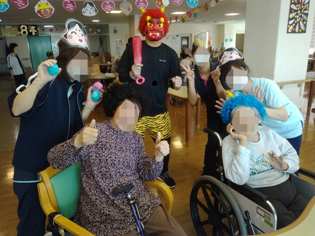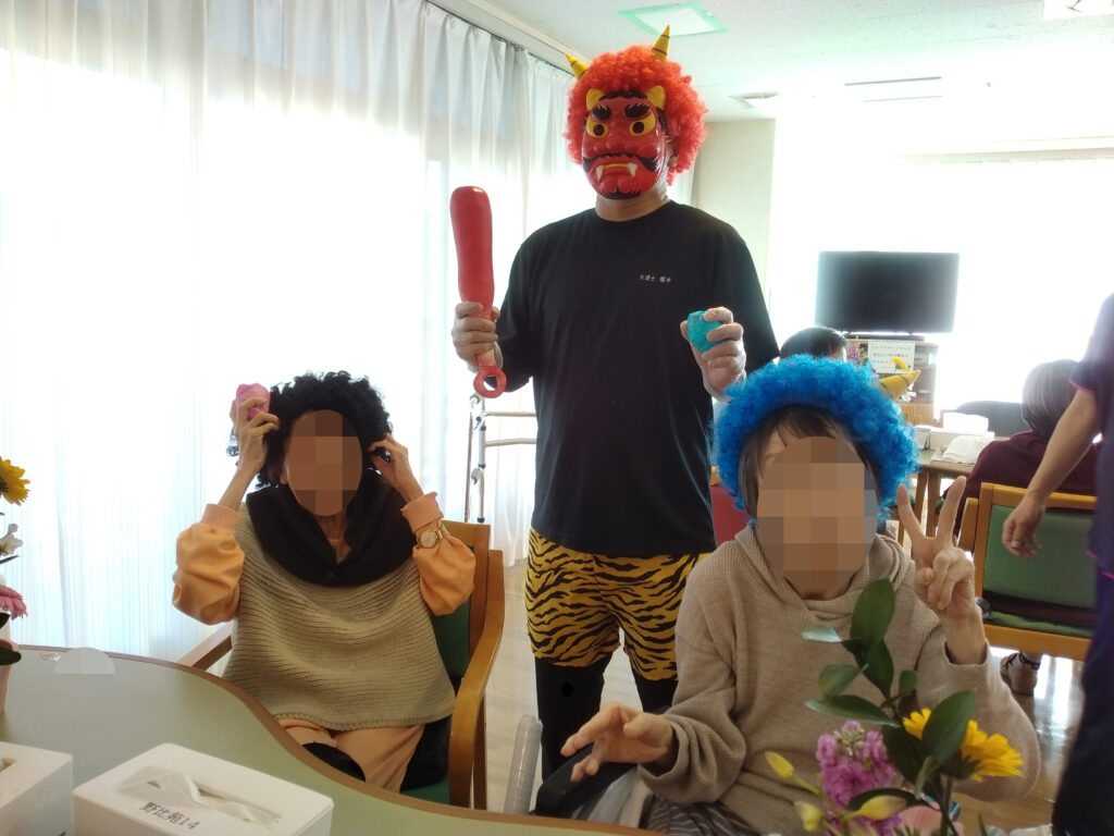 雪でも降りそうな寒い日が続く2月上旬、野比苑では寒さを吹き飛ばすような元気あふれる節分レクが行われました。