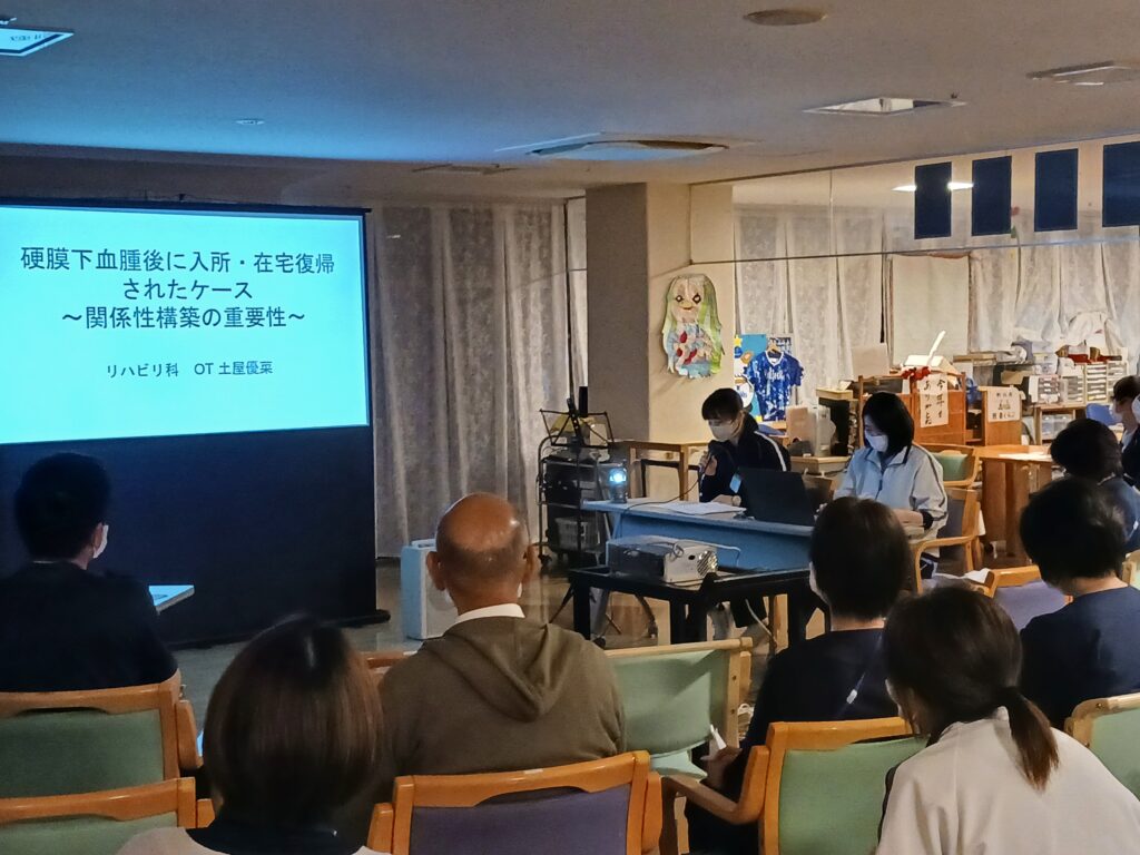 リハビリにより身体状態が向上し自宅での生活に復帰できた事例、食事を摂るための嚥下能力の向上、床ずれの予防や、認知症状の改善に向けた取り組み、脳血管疾患からの回復を目指した事例など、野比苑の各部署からさまざまな取り組み事例が発表され、私たち職員にとってとても有意義な自己研鑽の場となりました。