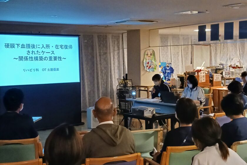 リハビリにより身体状態が向上し自宅での生活に復帰できた事例、食事を摂るための嚥下能力の向上、床ずれの予防や、認知症状の改善に向けた取り組み、脳血管疾患からの回復を目指した事例など、野比苑の各部署からさまざまな取り組み事例が発表され、私たち職員にとってとても有意義な自己研鑽の場となりました。